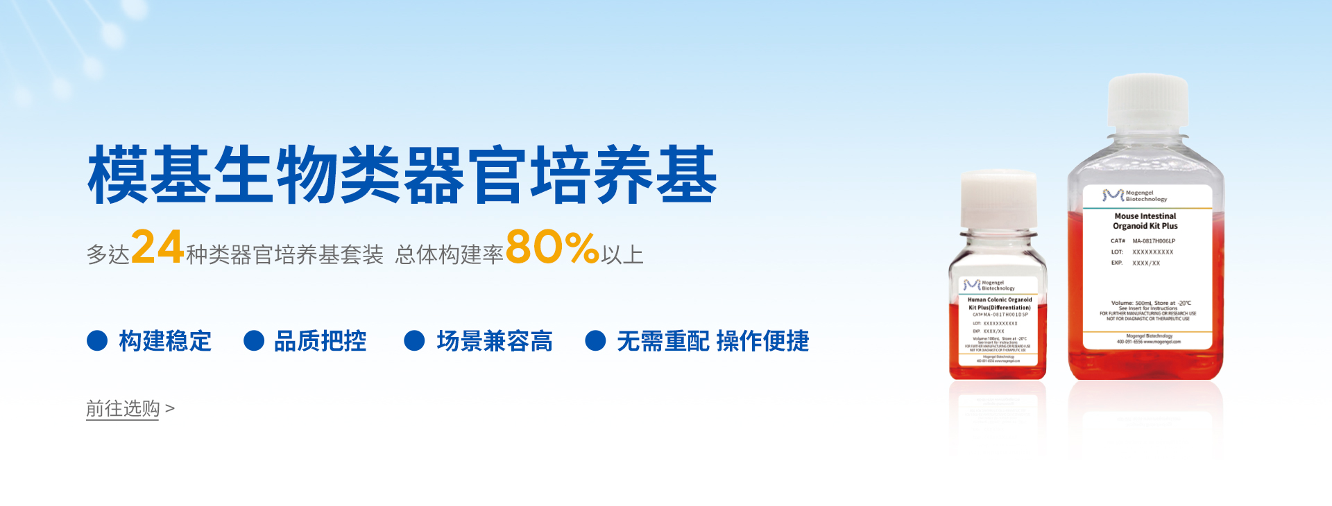 廈門模基生物科技有限公司(Xiamen Mogengel)位于中國廈門,是中國首家提供類器官培養整體解決方案的企業;是一家集研發、智造、銷售、服務于一體,致力于3D類器官培養原料的研發與產業化升級的高新技術企業。